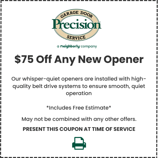 Looking for a garage door coupon or special deal? You’ve come to the right place! Print these coupons or show them to your technician on your mobile device to take advantage of these special offers. Please note: Coupons and discounts may not be combined.